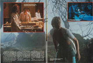 The rundown: Peter Weller’s RoboCop gets his cover photo moment in the sun (looks like it was kind of literally in the sun, judging by the near-fluorescent yellow background); and the contents page is your opportunity to see John Goodman and Jeff Daniels in a scene from Arachnophobia. The Communications letters section is less than two-thirds of a page this issue, and the three lucky letter writers take issue with various comments by recent TV and film creators in interviews; and David McDonnell’s Medialog notes that Hollywood is already planning a RoboCop 3, even though RoboCop 2 “is barely in release.”