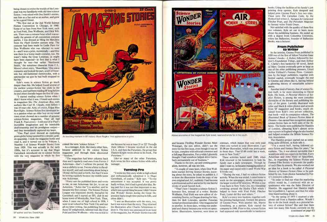 In his From the Bridge column, publisher Kerry O'Quinn describes meeting and interviewing George Lucas, which would see print beginning in the next issue; Communications letters include feedback on Altered States, ideas for supporting the space program, Buck Rogers critiques, and more; Log Entries short items include an update on the Heavy Metal movie (which is slated for an August release), a possible Man from U.N.C.L.E. movie, Britain's Hammer Films aims for the small screen, the SF musical-comedy Search for the Gods?, the new Harlan Ellison Record Collection, and more.